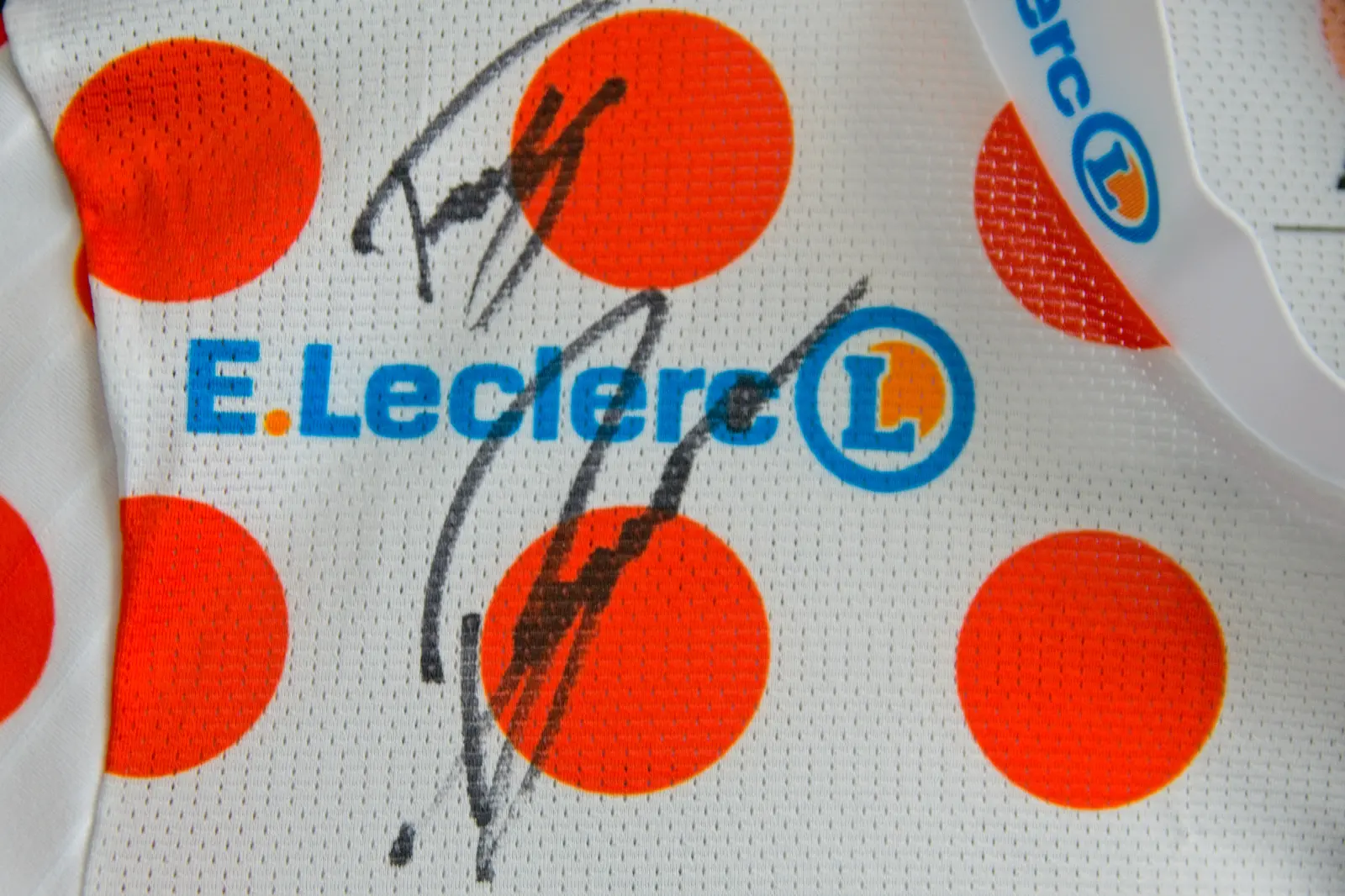 Dres - pikčasta majica iz Tour de France 2025 s podpisom najboljšega kolesarja na svetu